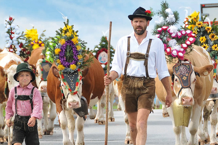 Les fêtes de la transhumance rythment la fin de l’été au Tyrol. Pour descendre des alpages, les vaches défilent parées de l...